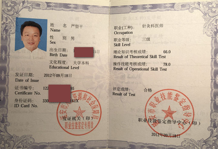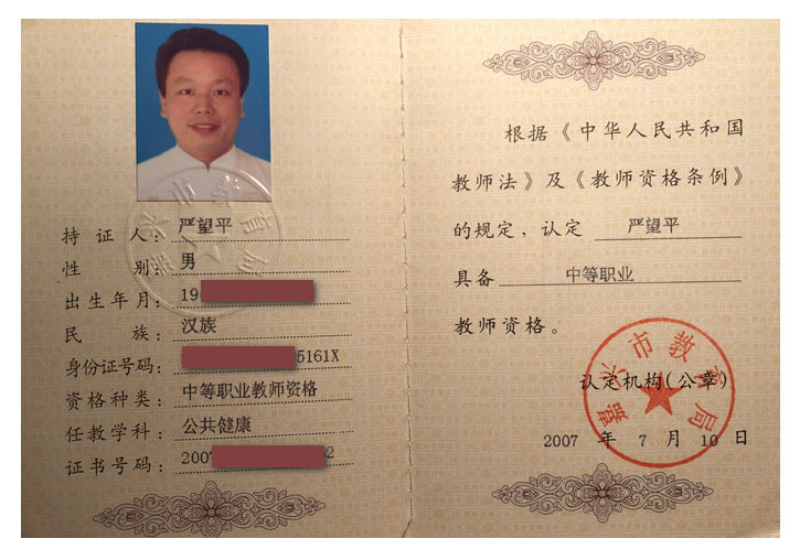 严望平个人证书